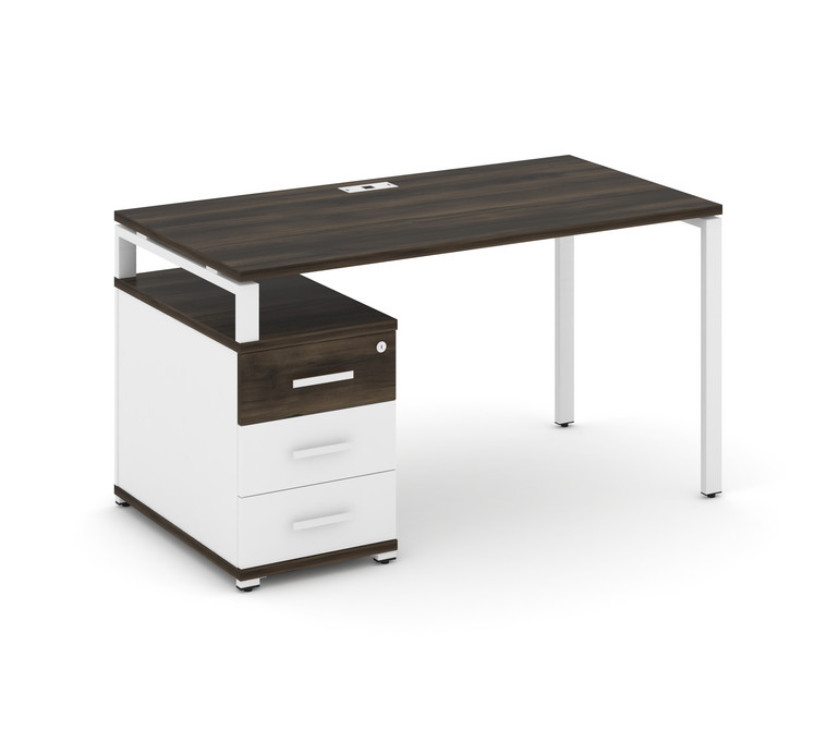 Concept Стол письменный с 1 опорной тумбой CN.SP-303 W Дуб Мали/Белый Бриллиант/Металл Белый 1380/17