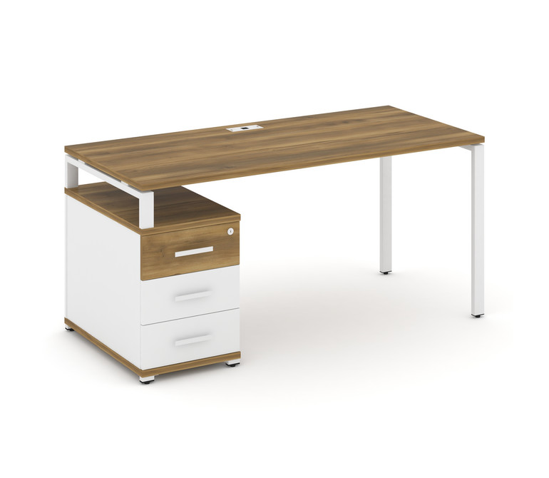 Concept Стол письменный с 1 опорной тумбой CN.SP-304 W Сандал Янтарный/Белый Бриллиант/Металл Белый