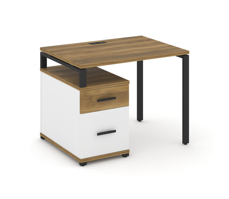 Concept Стол письменный с 1 опорной тумбой CN.SP-305 B Сандал Янтарный/Белый Бриллиант/Металл Черный