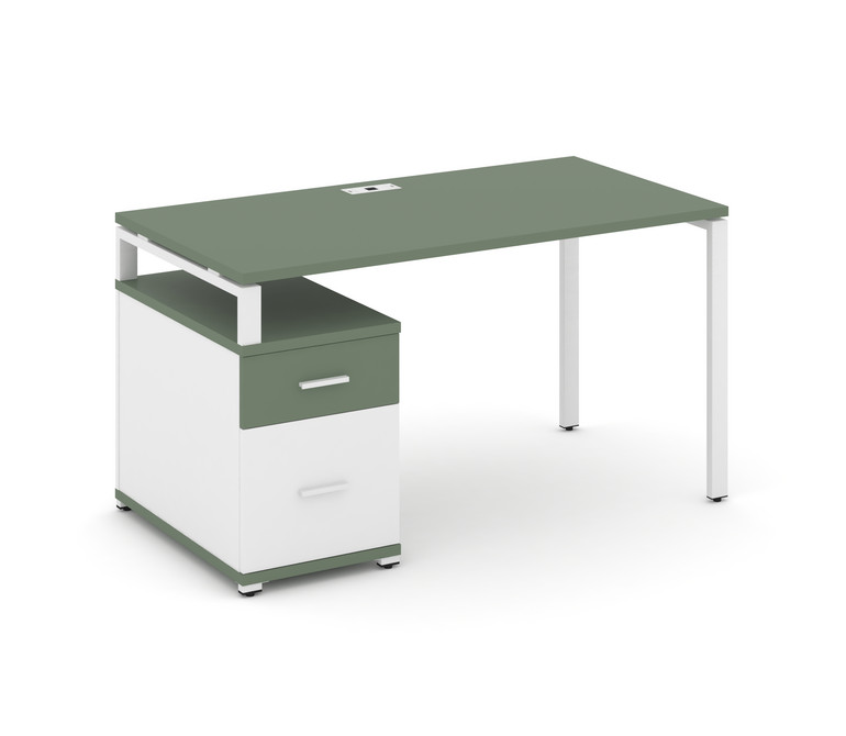 Concept Стол письменный с 1 опорной тумбой CN.SP-305 W Кобо/Белый Бриллиант/Металл Белый 980/1346*72