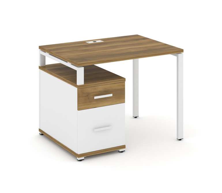 Concept Стол письменный с 1 опорной тумбой CN.SP-305 W Сандал Янтарный/Белый Бриллиант/Металл Белый