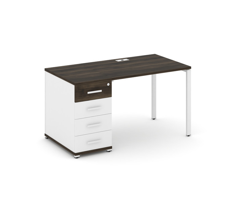 Concept Стол рабочий с 1 опорной тумбой CN.SP-401 W Дуб Мали/Белый Бриллиант/Металл Белый 1400*720*7