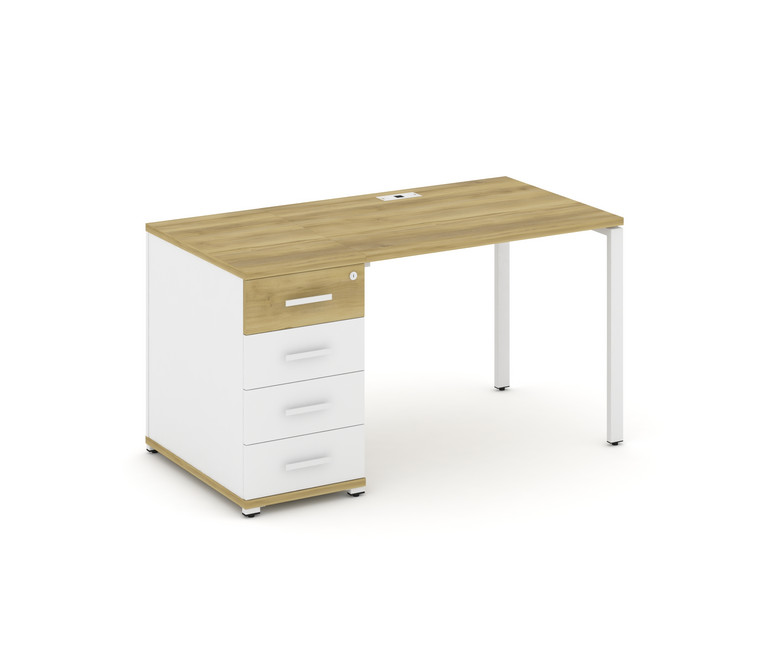 Concept Стол рабочий с 1 опорной тумбой CN.SP-401 W Дуб Винченцо/Белый Бриллиант/Металл Белый 1400*7