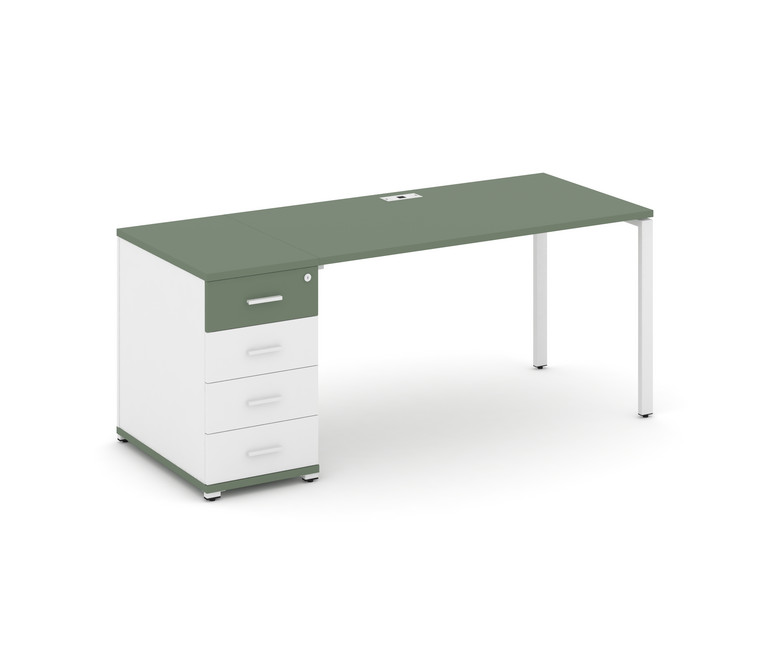 Concept Стол рабочий с 1 опорной тумбой CN.SP-401 W Кобо/Белый Бриллиант/Металл Белый 1400*720*750