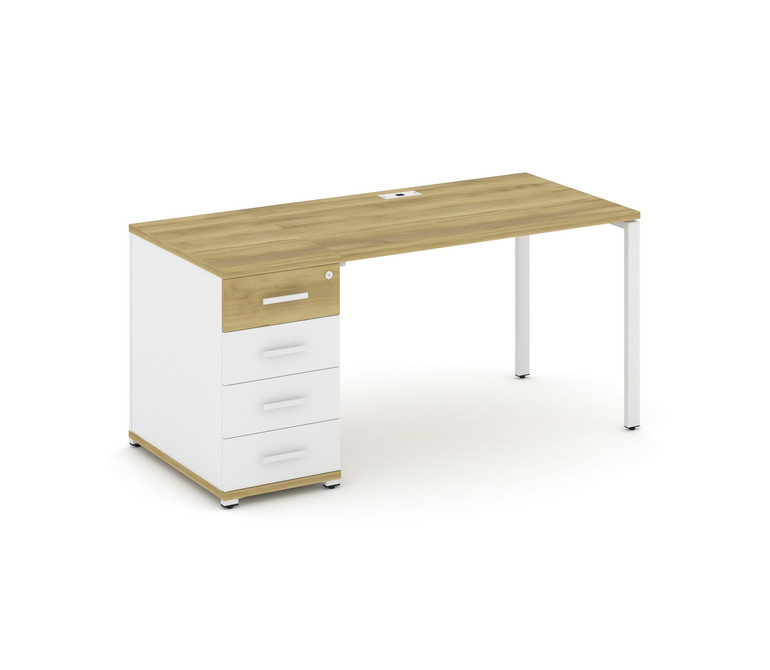 Concept Стол рабочий с 1 опорной тумбой CN.SP-402 W Дуб Винченцо/Белый Бриллиант/Металл Белый 1600*7