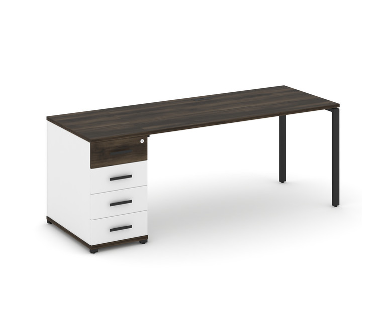 Concept Стол рабочий с 1 опорной тумбой CN.SP-404 B Дуб Мали/Белый Бриллиант/Металл Черный 2000*720*