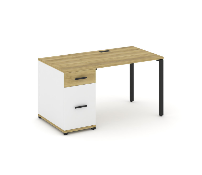 Concept Стол рабочий с 1 опорной тумбой CN.SP-405 B Дуб Винченцо/Белый Бриллиант/Металл Черный 1400*