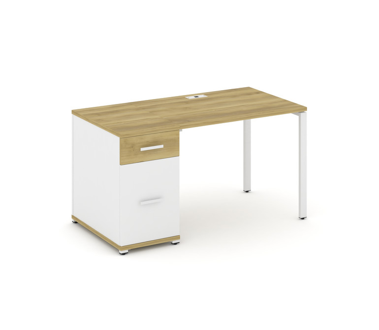 Concept Стол рабочий с 1 опорной тумбой CN.SP-405 W Дуб Винченцо/Белый Бриллиант/Металл Белый 1400*7