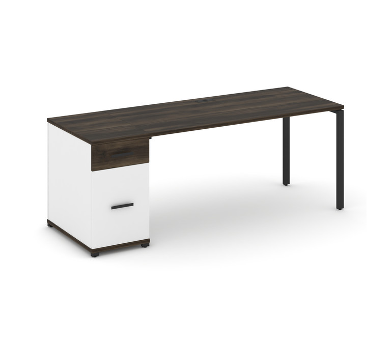 Concept Стол рабочий с 1 опорной тумбой CN.SP-408 B Дуб Мали/Белый Бриллиант/Металл Черный 2000*720*