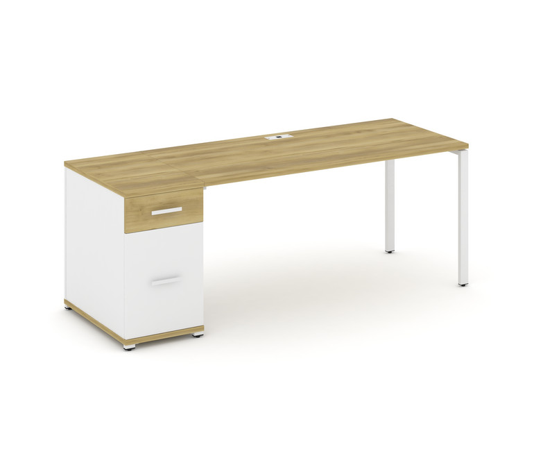 Concept Стол рабочий с 1 опорной тумбой CN.SP-408 W Дуб Винченцо/Белый Бриллиант/Металл Белый 2000*7