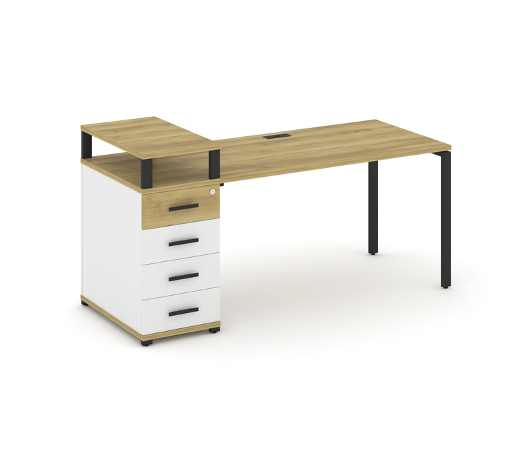 Concept Стол рабочий с 1 опорной тумбой CN.SP-411 B Дуб Винченцо/Белый Бриллиант/Металл Черный 1800*