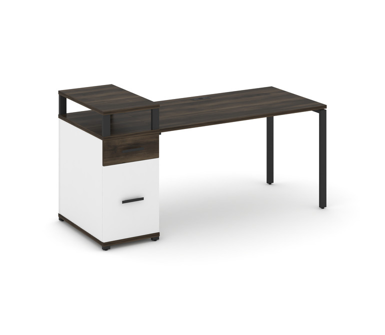 Concept Стол рабочий с 1 опорной тумбой CN.SP-415 B Дуб Мали/Белый Бриллиант/Металл Черный 1800*720*