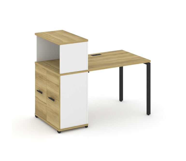 Concept Стол рабочий с опорным распаш. шкафом с надставкой низ. CN.SP-225 B Дуб Винченцо/Белый Брилл