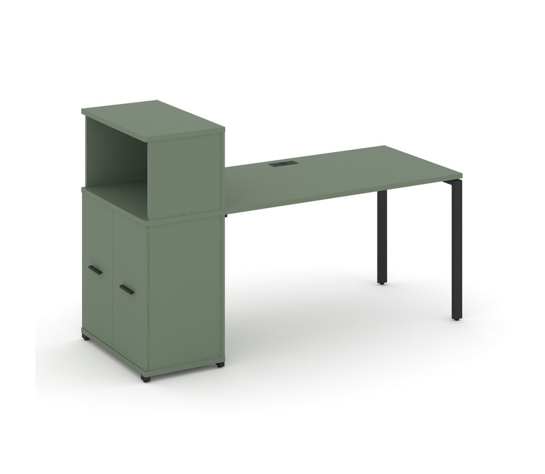 Concept Стол рабочий с опорным распаш. шкафом с надставкой низ. CN.SP-226 B Кобо/Металл Черный 1600*