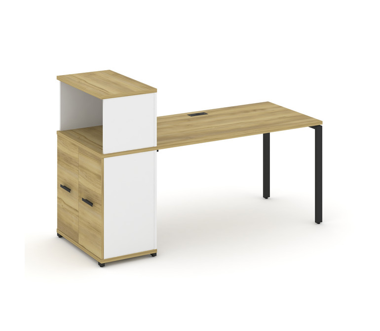 Concept Стол рабочий с опорным распаш. шкафом с надставкой низ. CN.SP-227 B Дуб Винченцо/Белый Брилл