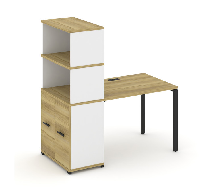 Concept Стол рабочий с опорным распаш. шкафом с надставкой выс. CN.SP-229 B Дуб Винченцо/Белый Брилл