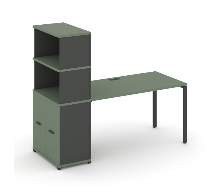 Concept Стол рабочий с опорным распаш. шкафом с надставкой выс. CN.SP-230 A Кобо/Антрацит/Металл Ант