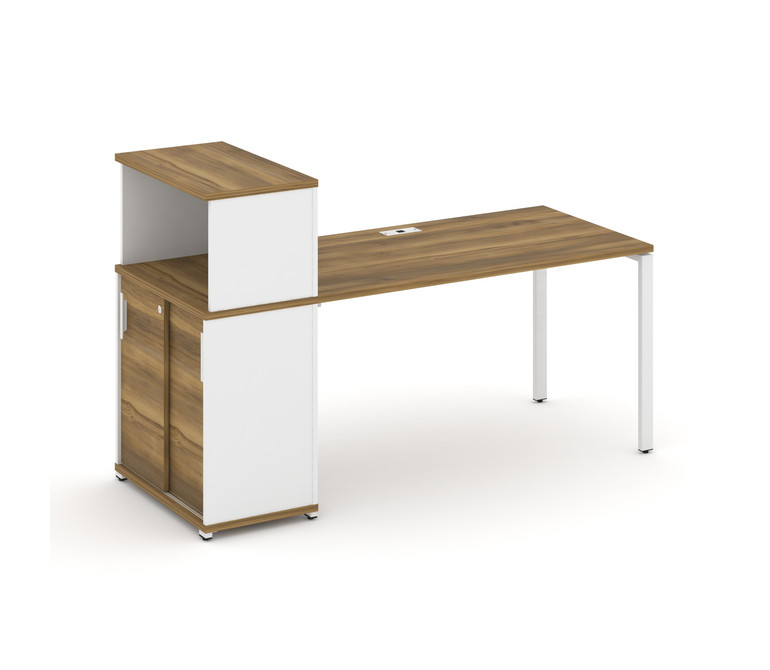 Concept Стол рабочий с опорным шкафом-купе с надставкой низ. CN.SP-239 W Сандал Янтарный/Белый Брилл
