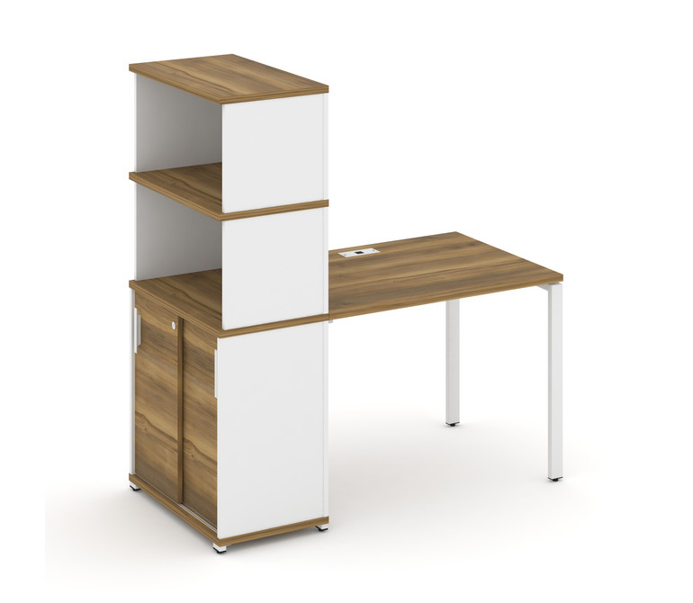 Concept Стол рабочий с опорным шкафом-купе с надставкой выс. CN.SP-241 W Сандал Янтарный/Белый Брилл