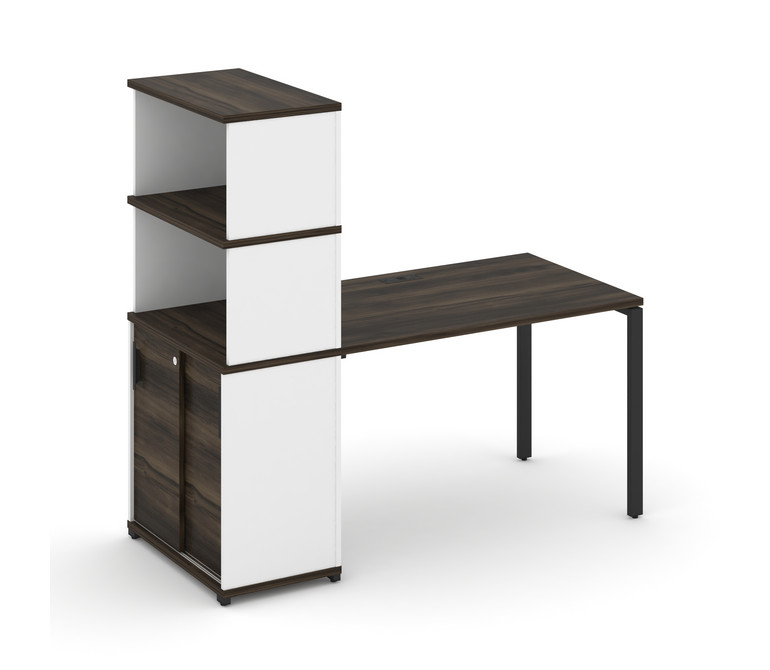 Concept Стол рабочий с опорным шкафом-купе с надставкой выс. CN.SP-242 B Дуб Мали/Белый Бриллиант/Ме