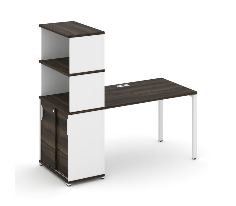 Concept Стол рабочий с опорным шкафом-купе с надставкой выс. CN.SP-242 W Дуб Мали/Белый Бриллиант/Ме
