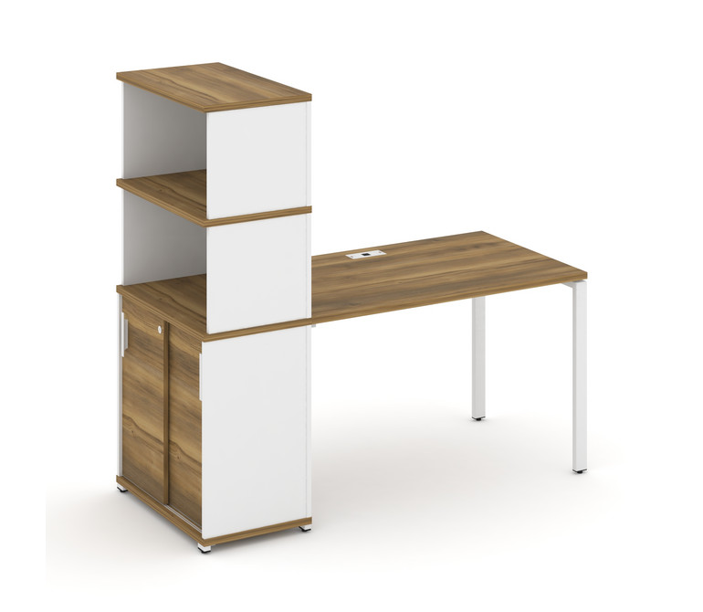 Concept Стол рабочий с опорным шкафом-купе с надставкой выс. CN.SP-242 W Сандал Янтарный/Белый Брилл