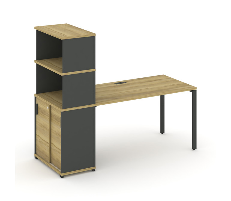 Concept Стол рабочий с опорным шкафом-купе с надставкой выс. CN.SP-243 A Дуб Винченцо/Антрацит/Метал