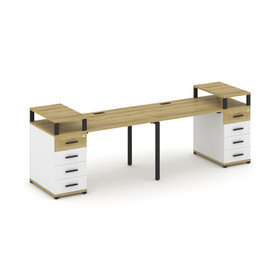Concept Стол рабочий с опорным стеллажом с надставкой низ. CN.SP-210 Дуб Винченцо/Белый Бриллиант/Ме