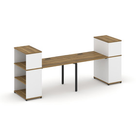 Concept Стол рабочий с опорным стеллажом с надставкой низ. CN.SP-212 Дуб Мали/Белый Бриллиант/Металл