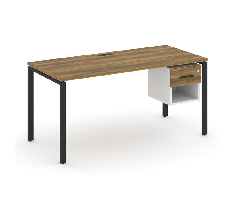 Concept Стол рабочий с подвесной тумбой 1 открытой нишей и одним ящ. CN.SP-120 B Сандал Янтарный/Бел