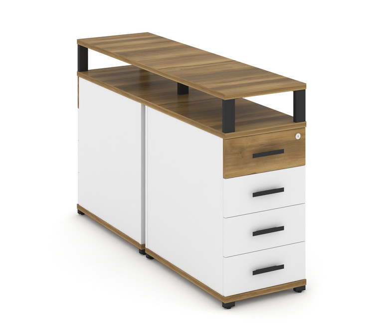 Concept Тумба двухсторонняя опорная/приставная 4 ящ. с надставкой. CN.DTGO-003 B Сандал Янтарный/Бел