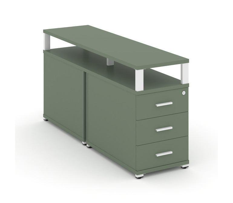 Concept Тумба двухсторонняя приставная 3 ящ. с надставкой. CN.DTGP-001 W Кобо/Металл Белый 420*1480*