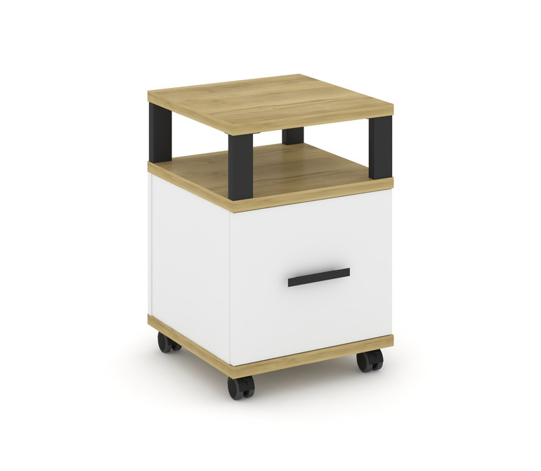 Concept Тумба мобильная 1 распаш. фасад с надставкой CN.TUM-008 B Дуб Винченцо/Белый Бриллиант/Метал