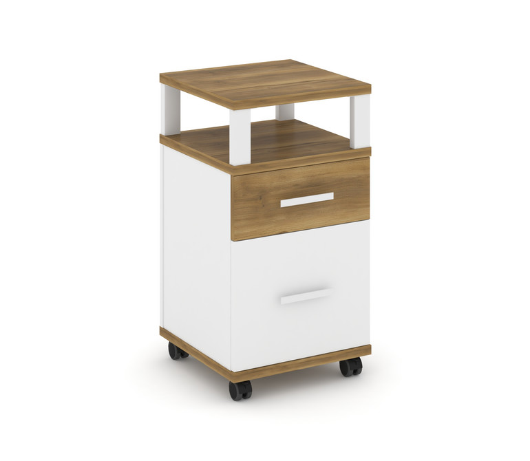 Concept Тумба мобильная 1 ящ.+1 распаш. фасад с надставкой CN.TUM-010 W Сандал Янтарный/Белый Брилли