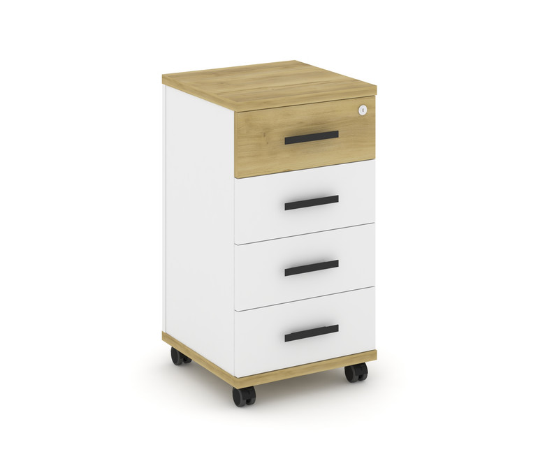 Concept Тумба мобильная 4 ящ. CN.TUM-005 B Дуб Винченцо/Белый Бриллиант/Металл Черный 420*420*782