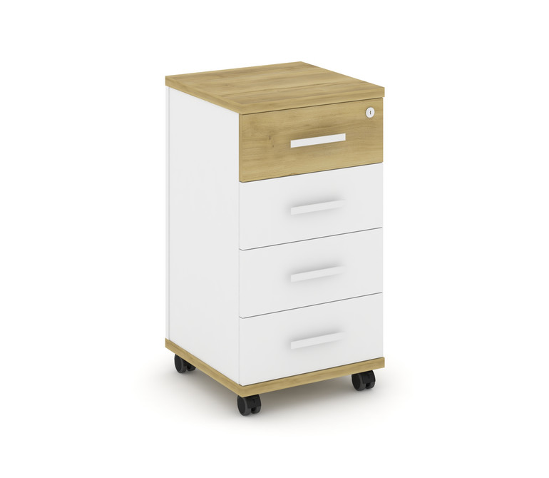 Concept Тумба мобильная 4 ящ. CN.TUM-005 W Дуб Винченцо/Белый Бриллиант/Металл Белый 420*420*782
