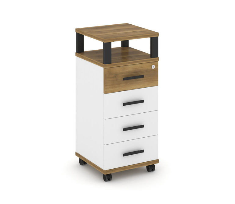 Concept Тумба мобильная 4 ящ. с надставкой CN.TUM-006 B Сандал Янтарный/Белый Бриллиант/Металл Черны
