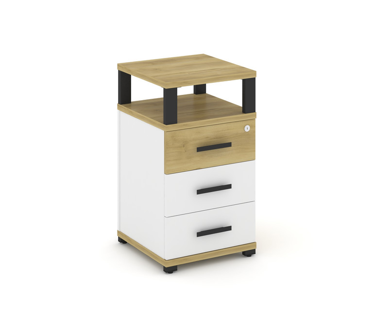 Concept Тумба приставная 3 ящ. с надставкой CN.TUP-003 B Дуб Винченцо/Белый Бриллиант/Металл Черный