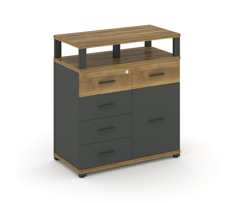 Concept Тумба приставная широкая 5 ящ.+1 распаш. фасад с надставкой широкой CN.TSP-018 A Сандал Янта