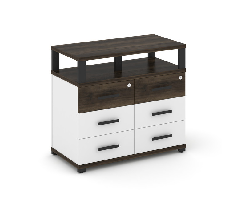 Concept Тумба приставная широкая 6 ящ. с надставкой широкой CN.TSP-009 B Дуб Мали/Белый Бриллиант/Ме