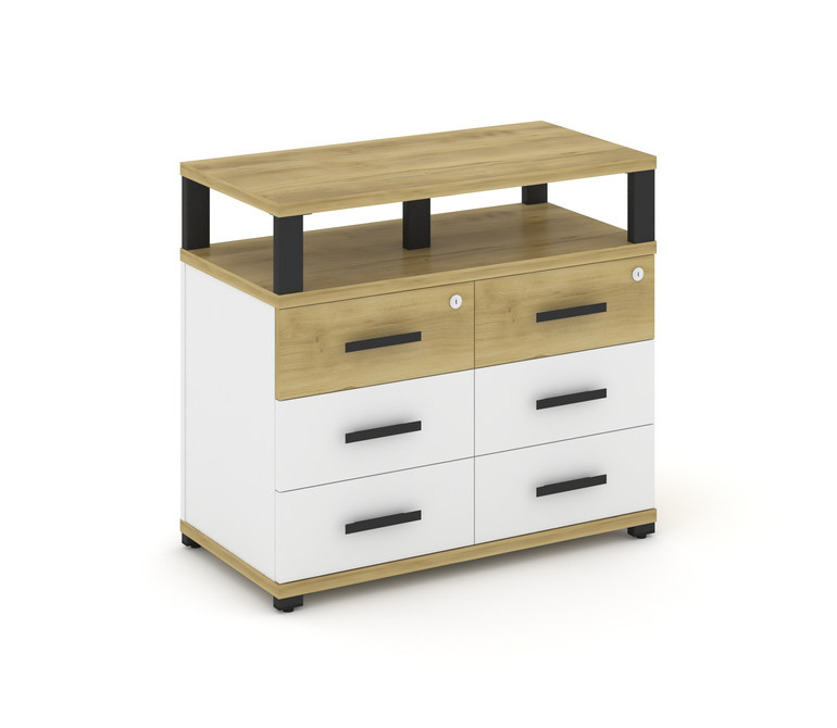 Concept Тумба приставная широкая 6 ящ. с надставкой широкой CN.TSP-009 B Дуб Винченцо/Белый Бриллиан