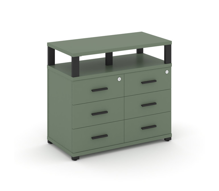Concept Тумба приставная широкая 6 ящ. с надставкой широкой CN.TSP-009 B Кобо/Металл Черный 836*420*