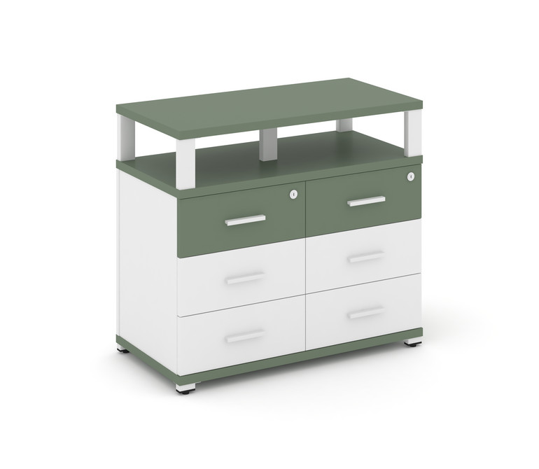 Concept Тумба приставная широкая 6 ящ. с надставкой широкой CN.TSP-009 W Кобо/Белый Бриллиант/Металл