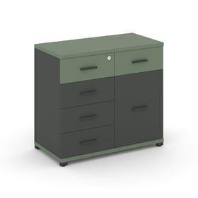 Concept Тумба приставная широкая 6 ящ. с надставкой узкой CN.TSP-008 B Дуб Винченцо/Белый Бриллиант/