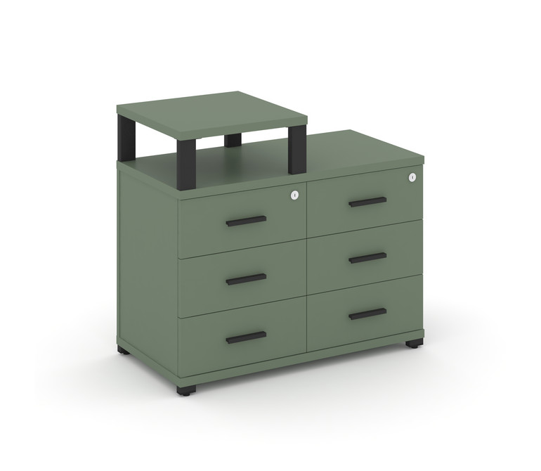 Concept Тумба приставная широкая 6 ящ. с надставкой узкой CN.TSP-008 B Кобо/Металл Черный 836*420*75