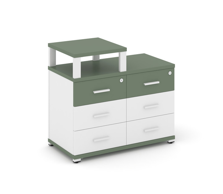 Concept Тумба приставная широкая 6 ящ. с надставкой узкой CN.TSP-008 W Кобо/Белый Бриллиант/Металл Б