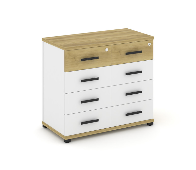 Concept Тумба приставная широкая 8 ящ. CN.TSP-013 B Дуб Винченцо/Белый Бриллиант/Металл Черный 836*4