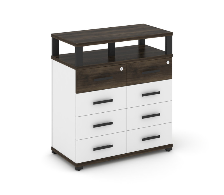 Concept Тумба приставная широкая 8 ящ. с надставкой широкой CN.TSP-015 B Дуб Мали/Белый Бриллиант/Ме