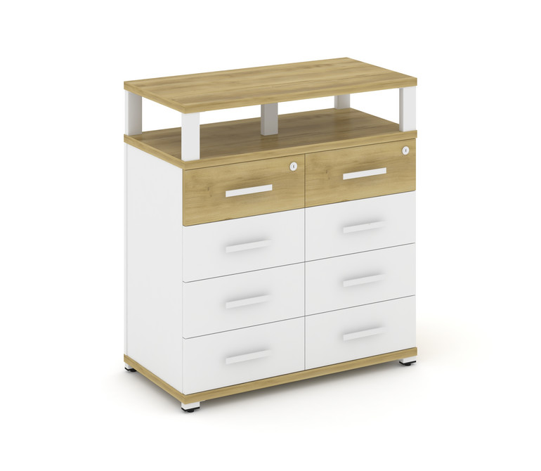 Concept Тумба приставная широкая 8 ящ. с надставкой широкой CN.TSP-015 W Дуб Винченцо/Белый Бриллиан
