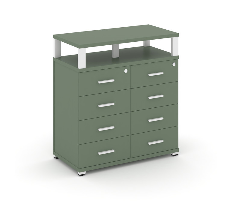 Concept Тумба приставная широкая 8 ящ. с надставкой широкой CN.TSP-015 W Кобо/Металл Белый 836*420*9